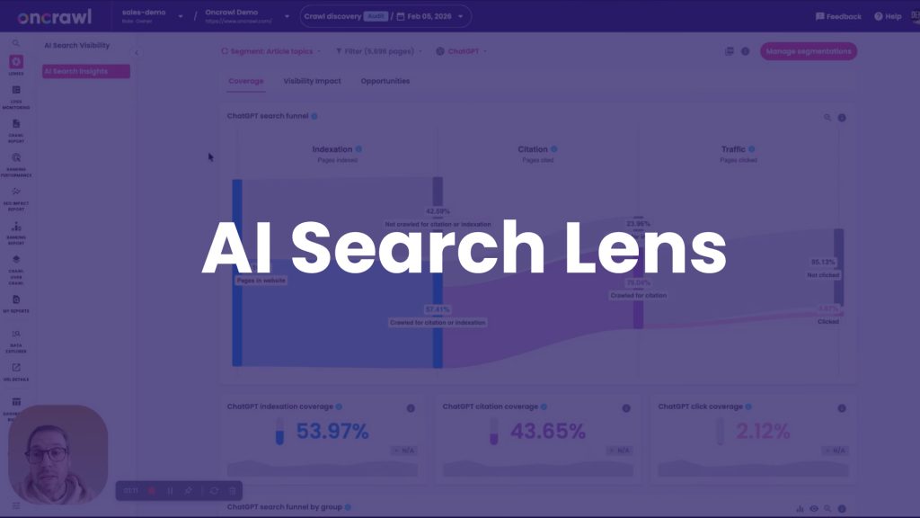 Comprenez votre véritable visibilité dans la recherche IA grâce à des données de crawl et de logs fiables. Identifiez ce que les LLMs voient, ce qu’ils ignorent et où agir en priorité.