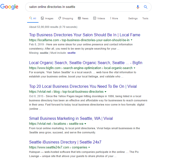 <div itemscope itemtype="http://schema.org/SalonService"> <span itemprop="name">Name of the Salon</span> <span itemprop="address">Salon Address</span> <div itemscope itemtype="http://schema.org/PostalAddress"> <span itemprop="addressLocality">City</span>, <span itemprop="addressRegion">State</span> <span itemprop="postalCode">Zip Code</span> </div> <span itemprop="telephone">Phone Number</span> </div>