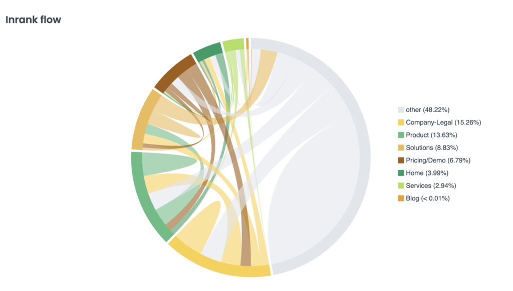 Mais au-delà des moteurs de recherche, il est également important pour vous de comprendre comment la popularité des liens internes circule au sein de votre site web. Oncrawl calcule un score Inrank qui mesure l’autorité d’une page en fonction du nombre et de la profondeur des liens internes pointant vers cette page et vous aide à mieux comprendre votre stratégie de maillage interne et son impact.