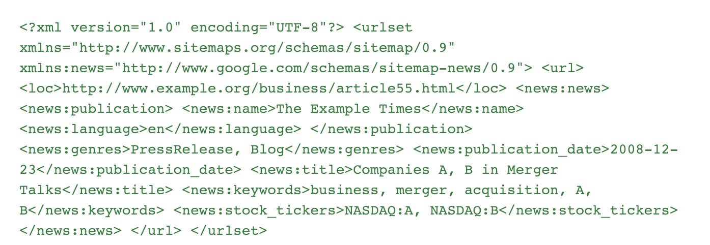 Exemple d’un markup Google News pour sitemaps (Source : Google)