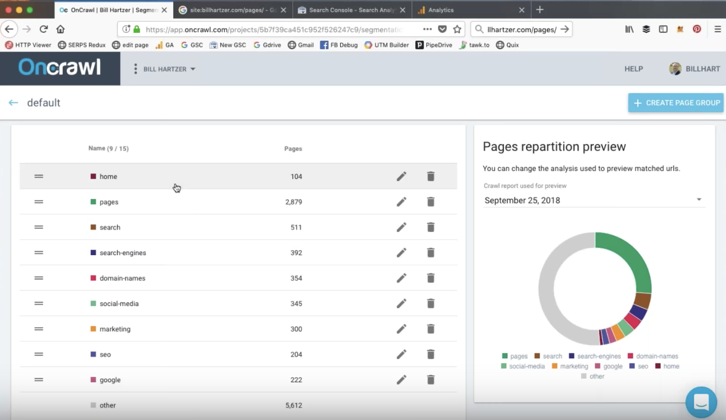 Sur le site que Bill analyse dans le webinaire, la segmentation est basée sur les différents répertoires du site.